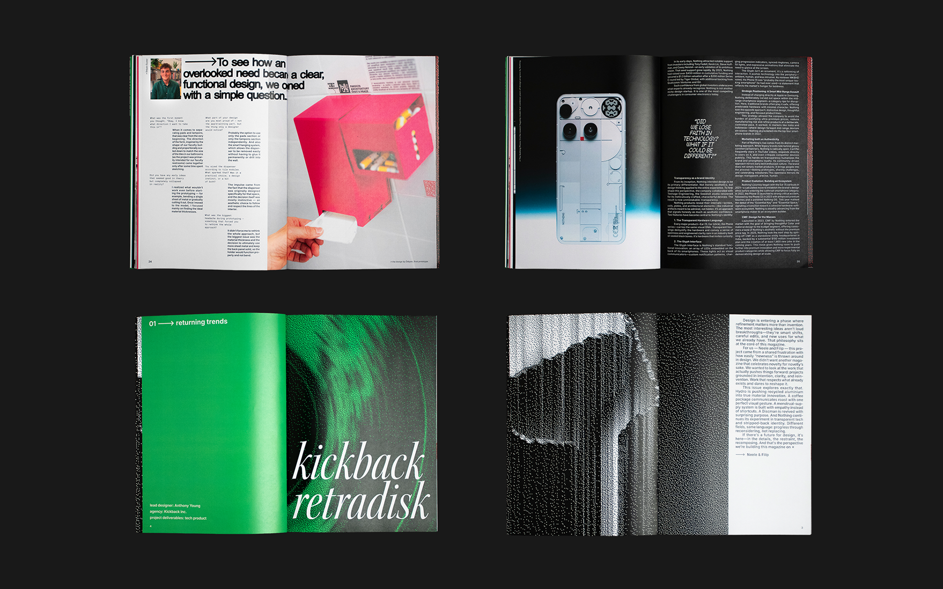 Creating unique designs in a world of factory manufacutring is a difficult task. Creators who design beyond what is already established drive the creative space forward. It was our task to curate examples of innovative product design and create a magazine that would celebrate it.
